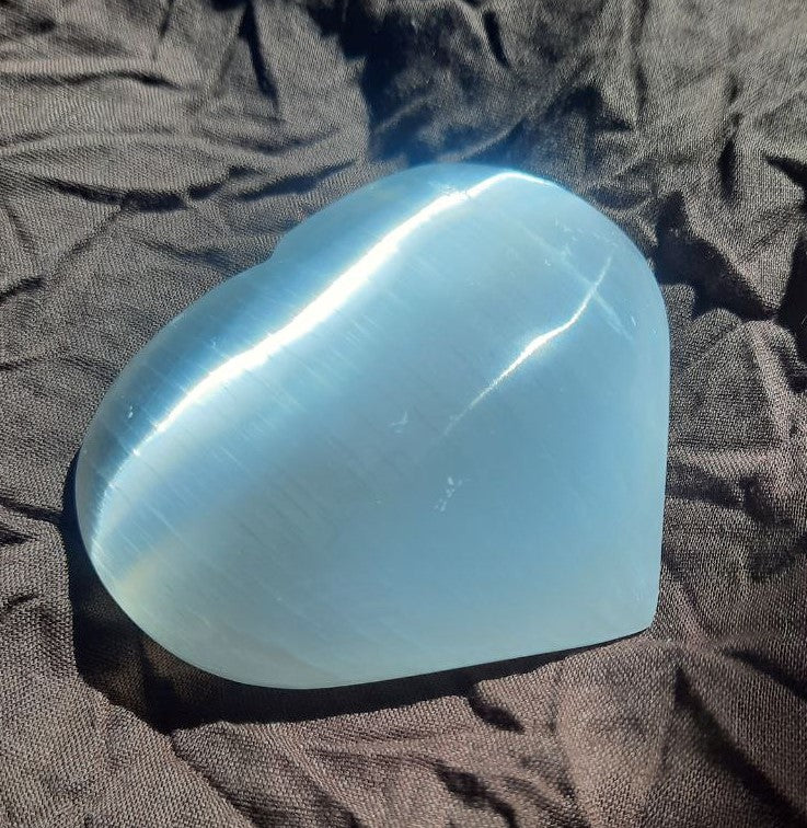 Herz aus Selenit sind ca. 80mm / 70mm groß und etwa 30mm dick.