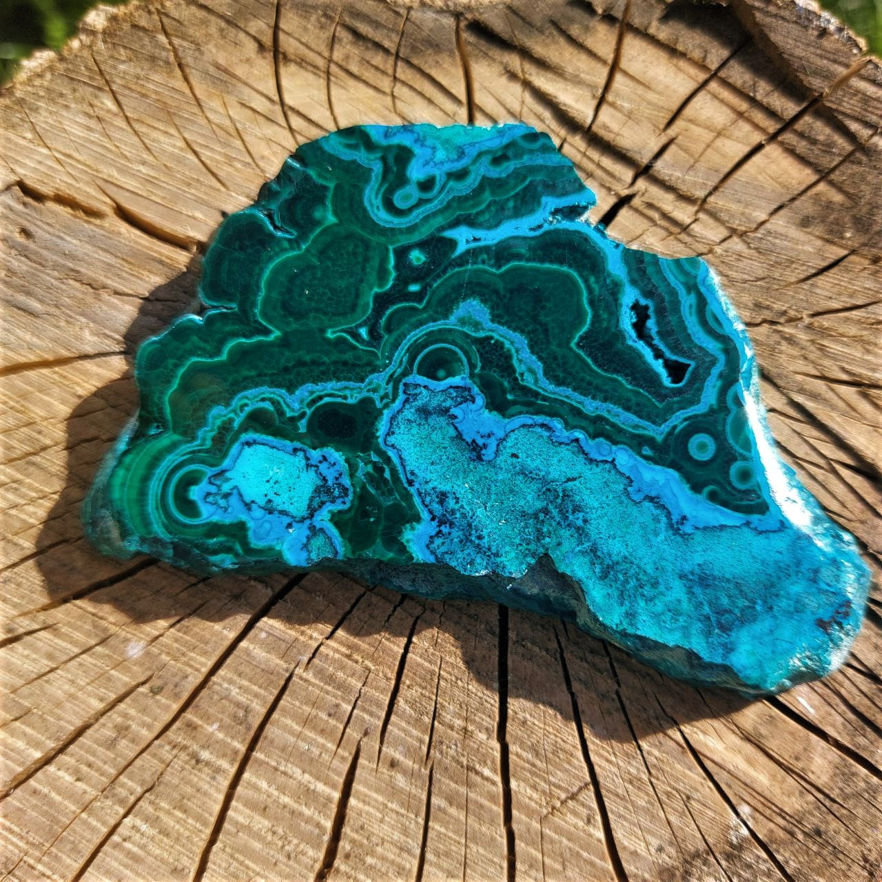 Scheibe Malachit mit Chrysokoll (2-Seitig poliert), DR Kongo