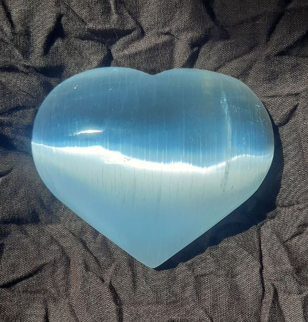Herz aus Selenit sind ca. 80mm / 70mm groß und etwa 30mm dick.